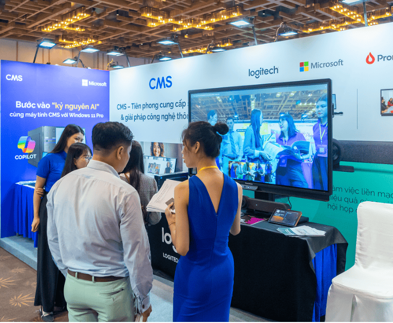 Tại sự kiện, CMS cũng trưng bày và giới thiệu giải pháp hội họp thông minh, với hệ thống thiết bị camera cao cấp của Logitech (Thụy Sĩ) kết hợp cùng màn hình tương tác Promethean (Anh quốc) đi kèm các phần mềm quản lý và dịch vụ hỗ trợ tận nơi, giúp kiến tạo không gian hội họp hoàn hảo, mọi lúc mọi nơi, cho các cơ quan, tổ chức và doanh nghiệp.
